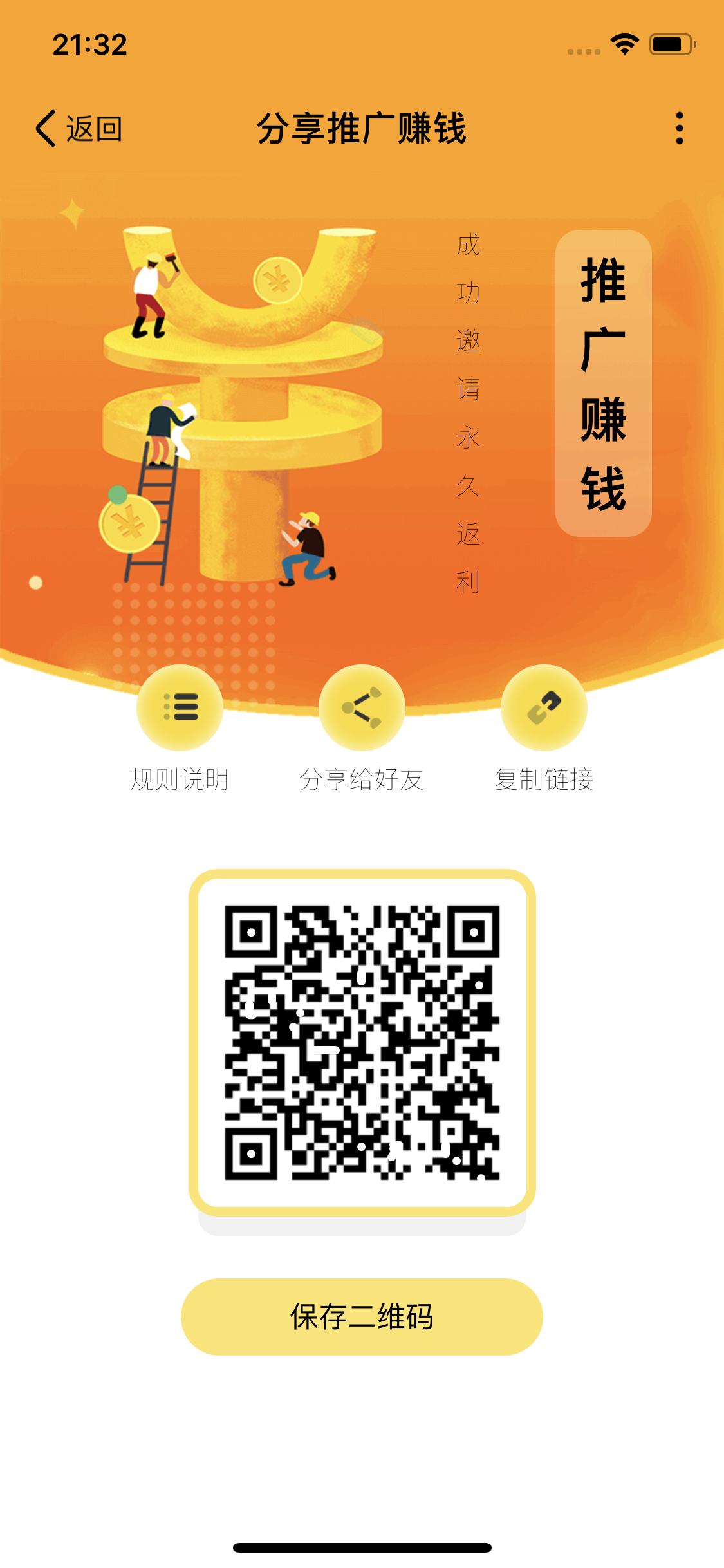 一键分享好友,推广永久获利